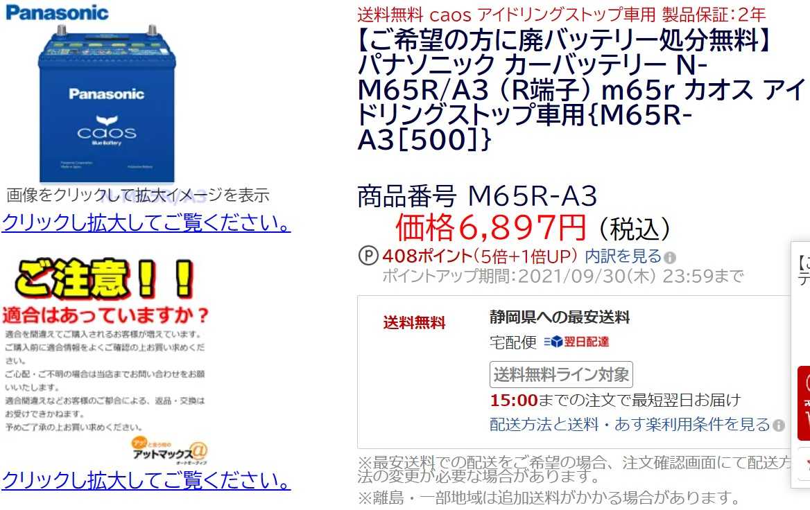 6年7カ月で8100キロトリクル充電してもせてきたがそろそろ交換しようと思い注文したキライな三木谷の楽天でだRakuten BIGのポイントがあるからお金が要らないからねアットマックス6,897円 x 1個 = 6,897円※10%税込送料 0(円)ポイント利用 -6,797(円)クーポン利用 -100(円)アットマックスは色々買っててノントラブルのショップだから安心してる