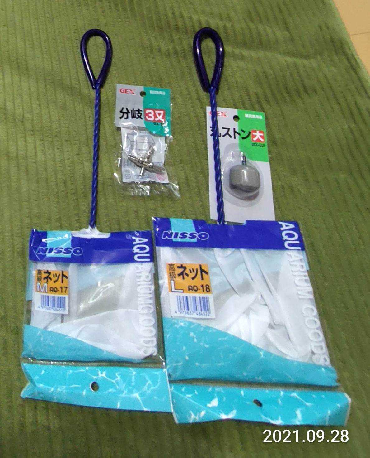 出目金を薬浴の為にMサイズを3個新調した網ですくおうとしたらイマイチ小さかったそれだけ出目金が大きくなったということかということでLサイズをひとつ買ってみたついでなのでエアを分岐するものと泡の出がイマイチでゴシゴシしても直らないので買い替えたあとで分岐を使ってやってみよううまく分けられるかな小さいポンプ2個使っているが大きめのポンプでエアを分岐できたらいいな