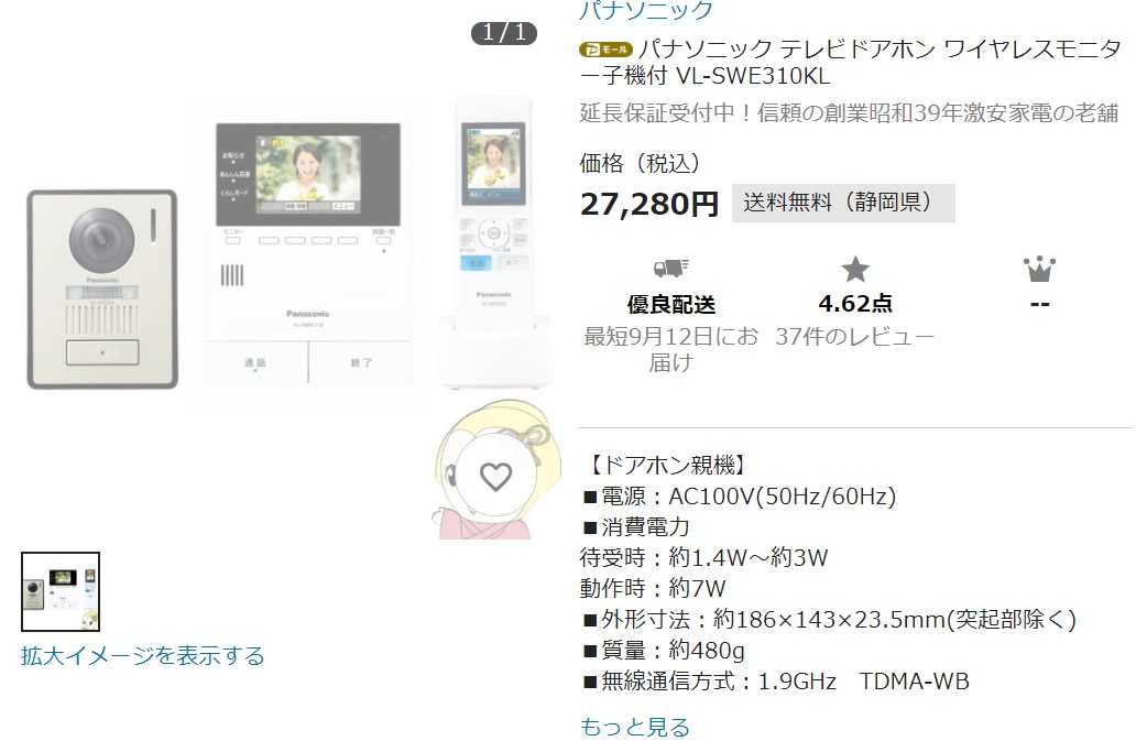 40年以上使ってたインターホンを兼ねたドアホンがいよいよダメになってきたチャイムを押すとピンポ~ンがピギャ~と鳴るようになるこんなときはボタンのところに接点復活剤を掛けると3か月は正常しかしまたピギャ~の繰り返し何度接点復活剤を掛けたことかそして2年我慢したもうダメ、買い替えようまたパナでいいやまずは親機はVL-SWE310KLで子機が1台付いてくるタイプぎおん ヤフー店VL-SWE310KL パナソニック テレビドアホン ワイヤレスモニター子機付 VL-SWE310KL1 × 27,280円商品の合計金額(税込) : 27,280円送料 : 0円利用ポイント : 70ポイントPayPay残高利用額 : 18,830円合計金額 : 8,380円注文詳細の確認ボーナス等の内訳PayPayボーナス 4,723円相当 ※ソフトバンクスマホユーザーなら毎週日曜日は+10%【指定支払方法での決済額対象】 1,000円相当5のつく日キャンペーン +4%【指定支払方法での決済額対象】 1,088円相当プレミアム会員特典 +2% PayPay STEP 544円相当PayPayモールで+2% PayPay STEP【指定支払方法での決済額対象】 543円相当倍!倍!ストア 誰でも+5%【決済額対象(支払方法の指定無し)】 1,360円相当PayPay残高払い【指定支払方法での決済額対象】 188円相当Tポイント 355ポイントストアポイント 272ポイントYahoo! JAPANカード利用ポイント(見込み)【指定支払方法での決済額対象】 83ポイント子機はもう1台必要なので安いところで購入したベスト電器PayPayモール店パナソニック VL-WD623 ワイヤレスモニター子機17,876円×1=17,876円商品の合計金額(税込) : 17,876円送料 : 0円利用ポイント : 10ポイントPayPay残高利用額 : 17,866円合計金額 : 0円注文詳細の確認PayPayボーナス 4,741円相当 ※ソフトバンクスマホユーザーなら毎週日曜日は+10%【指定支払方法での決済額対象】 1,000円相当5のつく日キャンペーン +4%【指定支払方法での決済額対象】 714円相当プレミアム会員特典 +2% PayPay STEP 356円相当PayPayモールで+2% PayPay STEP【指定支払方法での決済額対象】 357円相当PayPay残高払い【指定支払方法での決済額対象】 178円相当ストアボーナス 2,136円相当Tポイント 178ポイントストアポイント 178ポイントショップは違うがほぼ同時に届いた明日取り付けにチャレンジだ子機は充電しておこう