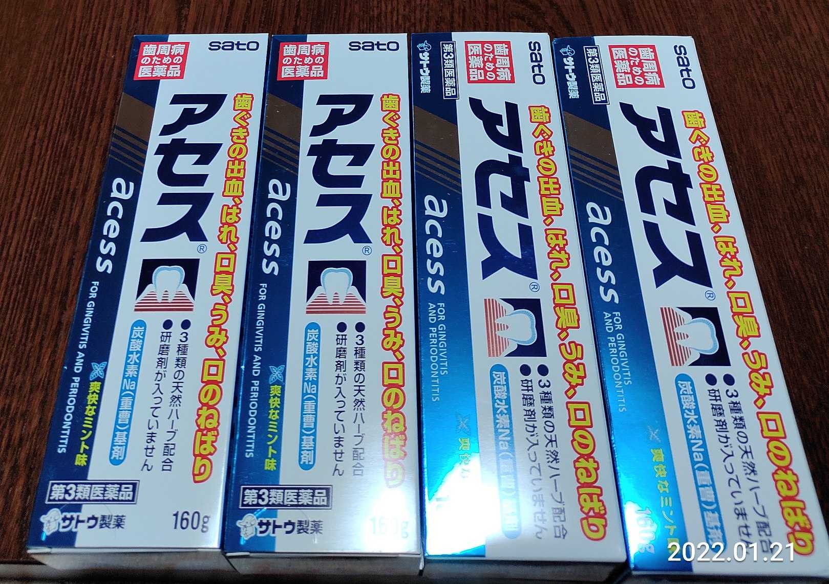 歯茎が腫れたことがあった歯医者さんにアセスはいいよと勧められて使ってたら自然に治ってたなので予防の意味で夜はこれで歯磨きしてる減ってきたから4本だと安いのでポチッた4本だと送料がなくなり1本あたりが安くなる