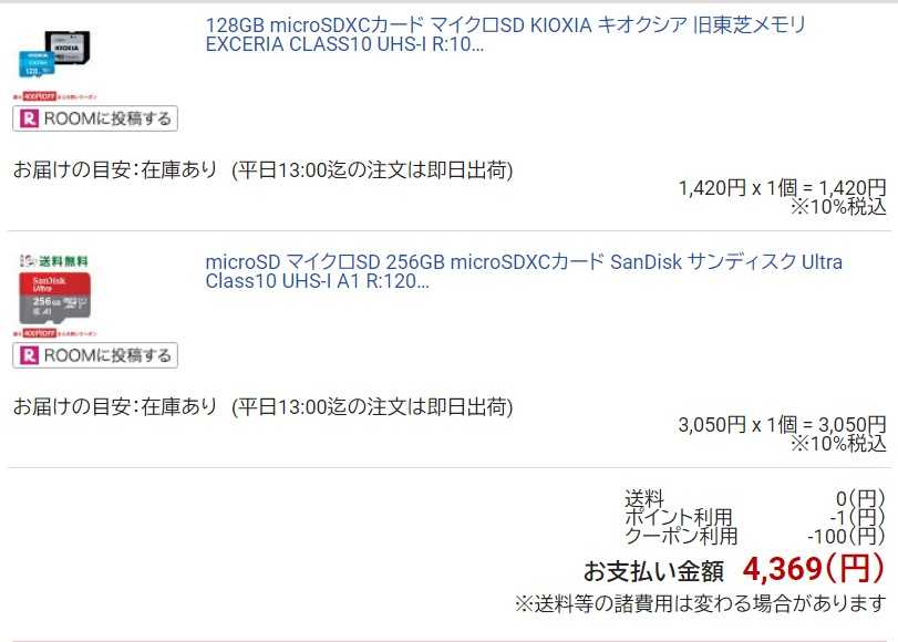 いつもの風見鶏さんでポチッた128と256だ予備は充分あるのに予備だ