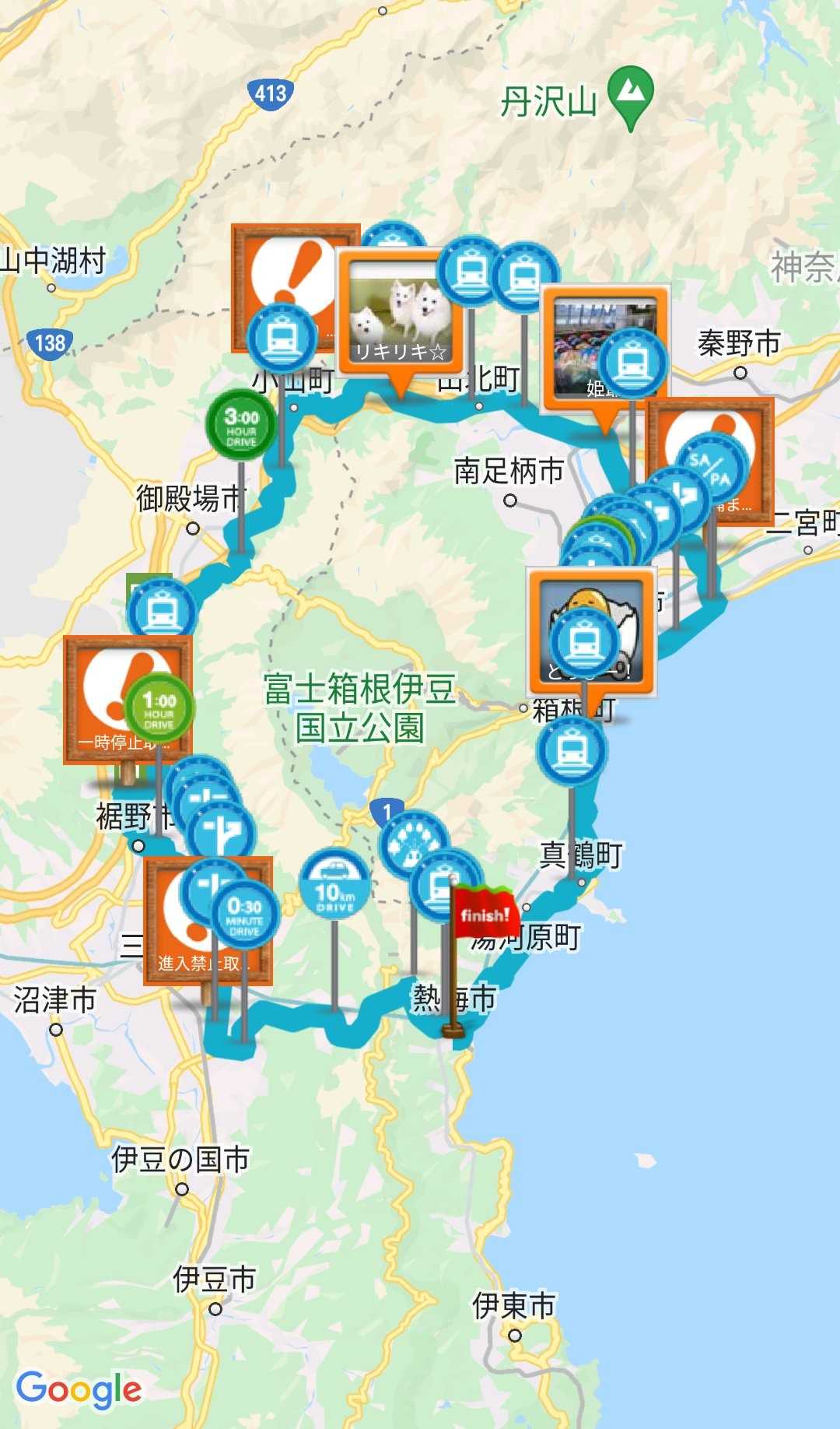 ヒマなので(毎日ヒマさ)プチドライブに行く2022年03月07日 08:54 - 15:07、122.68 Km 6 時間 13 分、3ハイタッチ、コレクション1個を獲得、バッジ30個を獲得、テリトリーポイント290pt.を獲得 #hightouchdrive取り敢えず裾野の滝巡りしようかなとまずは偕楽園(不動の滝)誰もいない公園みたいになってて梅と桜が楽しめた次は五竜の滝ここは30年ぐらい来てないな相変わらず滝には変化がないような吊り橋なんてなかったな入り口に小屋みたいな店があった昔はなかったよなぁ次は屏風岩なんだ、こんなところにあったのかさんざんこの道は走ってるのに意識してないとこんなもんか柱状節理がわかりやすいところださくらたまご杉山ここで新鮮な卵をゲットしていく金時公園金時神社の手前にあるというか同じ場所だな金太郎伝説にちなんだ金時神社やまきたさくらカフェここで珈琲と軽食と思ったら休みだった(^^;コロナ渦だから臨時休業かな知らんけどとまぁ、ぐるり一周して帰宅したGooglemapは良くトレースしてたなぁ