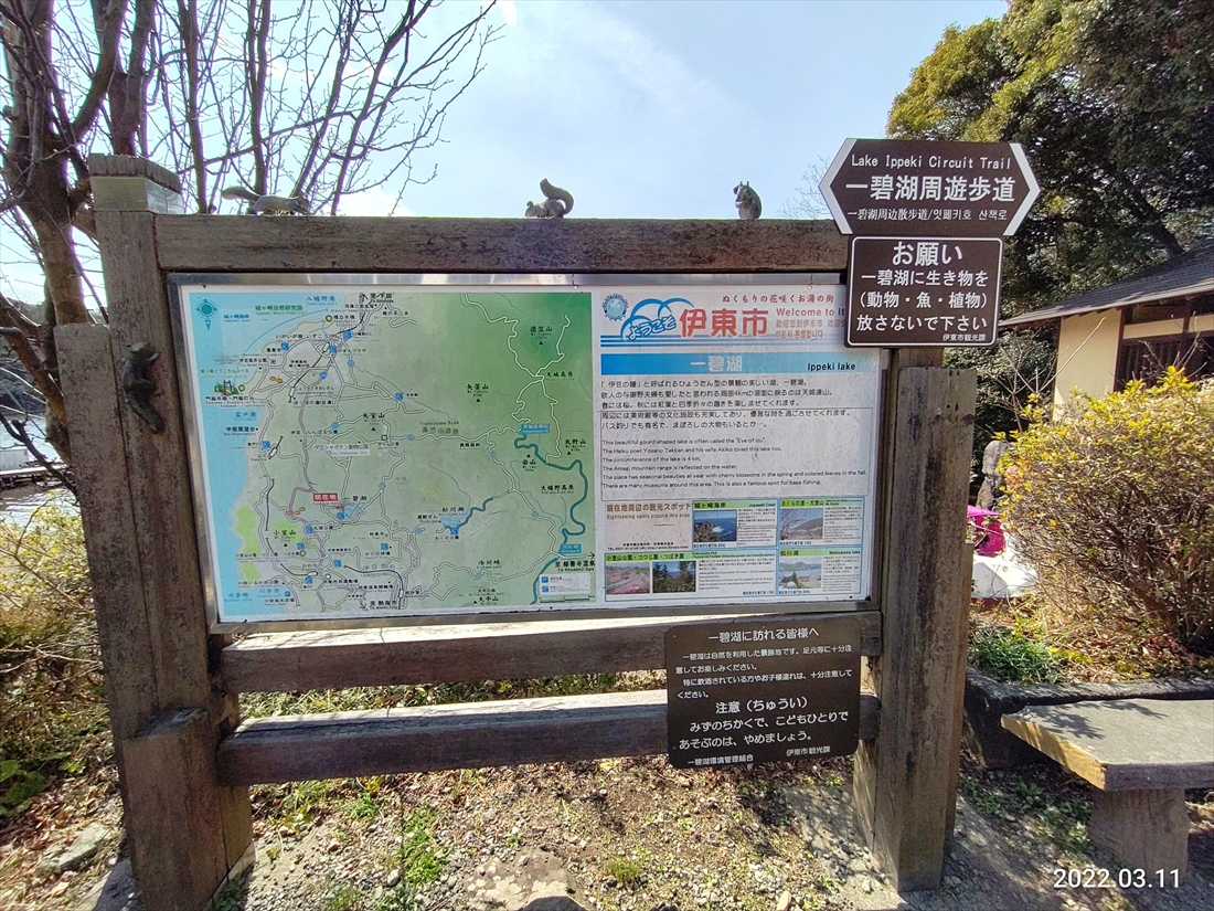 ラーメン食べたし運動だな一碧湖に行ってみたここは何度も来てはいるがちょっと景色みておしまいだ今日はラーメンのカロリーを消費しようかなと時計の反対まわりで5分も歩いただろうか軽い上りと下りが数回繰り返されて疲れた高いところでベンチがあったので休憩してたすると若い子が反対まわりで歩いてきたのでここまでどれくらいかかったのと尋ねたすると30分ぐらいだと思いますとな~んとたったそれだけかいなしかも今いるところだけ高低があるけどもう少し進めば平らだとじゃあ歩こう、せっかく来たんだしカロリーも少しは消費するだろうとよっしゃあ、元気出たぜ途中に一碧湖神社があったここは車でも来れるらしいあとで道路をチェックだ(^^♪確かに車で行けるまだかな、まだかなと歩いていたら見覚えのあるカフェだなんと簡単に一周してしまったカフェにいたキャバリアの飼い主さん夫婦としばしお話してしまった東京から3か月に一度はこっちにくるらしいワンちゃんOKのペンションに泊まったようだそしてここのカフェでお茶していくのがいつもの過ごし方なんだとワンちゃんはもうすぐ10歳、なんだかとても老犬に見えるやっとこさ、お手してくれた帰るかもう少しブラつくか大室山は5分とかからないのでさくらの里に寄っていく桜はどうかな?少しだけ咲いてたここはあまり早咲きの桜はないので今の時期だとこんなもんだな国道135を走るのは退屈なので県道にした富戸駅でステンレス車両が停車してたいまはステンレスなのか、どれどれ写真撮っておくかって撮り鉄か~いいつまでたったら発車するんだろうと思ってたら上り電車がやってきた単線だからここですれ違うようだそして出発していったう~ん、気分は撮り鉄だな汐吹公園駐車場に停めて扇山展望台を目指す5分で行けるらしい歩くぞ5分と言えど階段を上がる腿がパンパン、くじけそうになったところで展望台だ晴れてるから初島も良く見えた(見慣れてるけどね)さぁ帰ろう歩いたよ帰宅したらカロリー抑え目のマンナンご飯が24個届いてたこれでご飯多めに食べたいカレー、そして非常食としても使える賞味期限は11月だそれまでに20個食べたらまた注文だもう何年もこの繰り返しだなハイタッチ!drive2022年03月11日 10:39 - 15:55、76.10 Km 5 時間 16 分、1ハイタッチ、バッジ7個を獲得、テリトリーポイント30pt.を獲得 #hightouchdrive