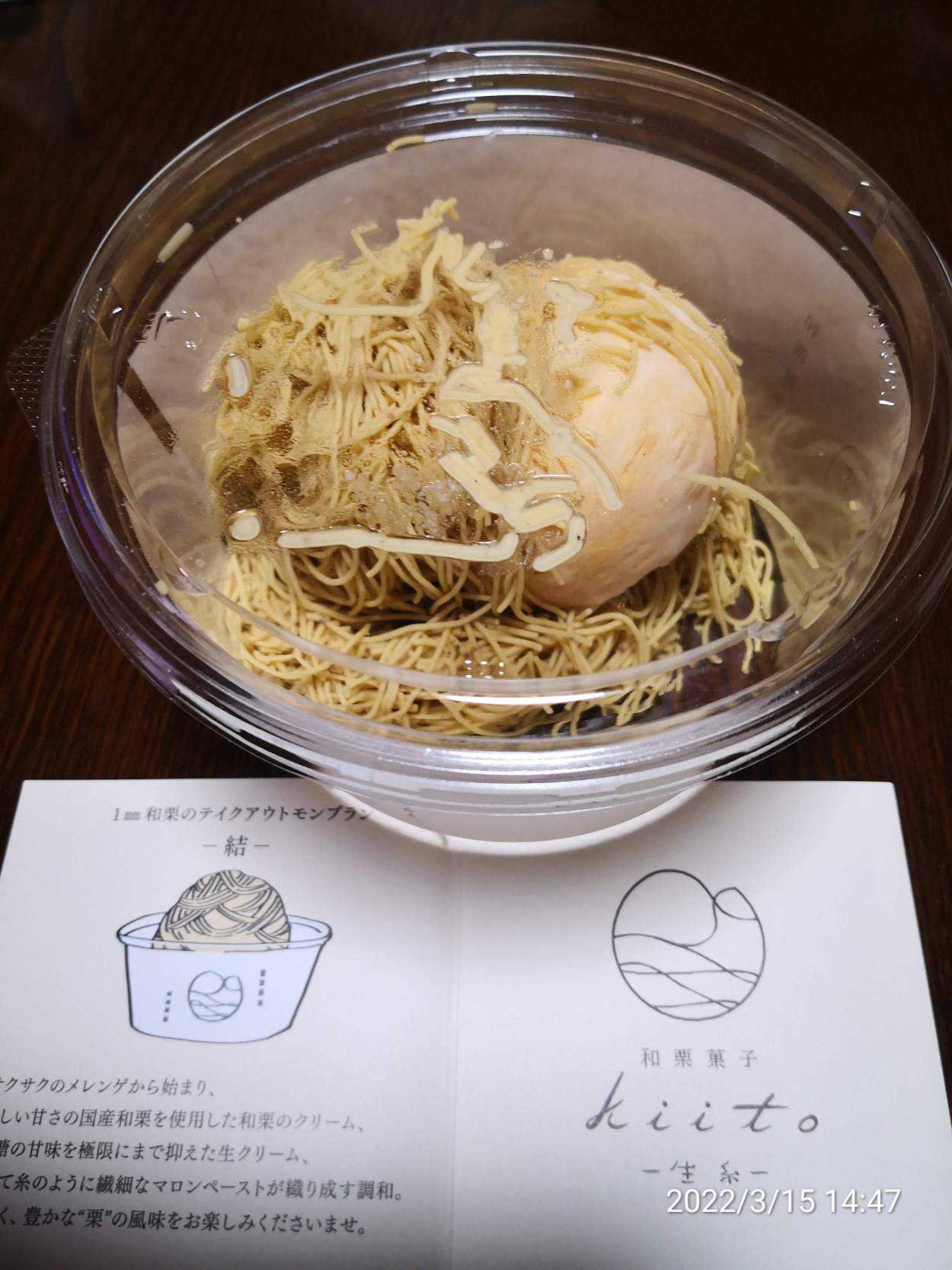 仕事した後はスイーツだなKIITOのモンブランはご褒美だ結-ゆい- を静かに自宅まで運んできたつもりだったが少し崩れてたしょうがないね奥さんとシェアだ