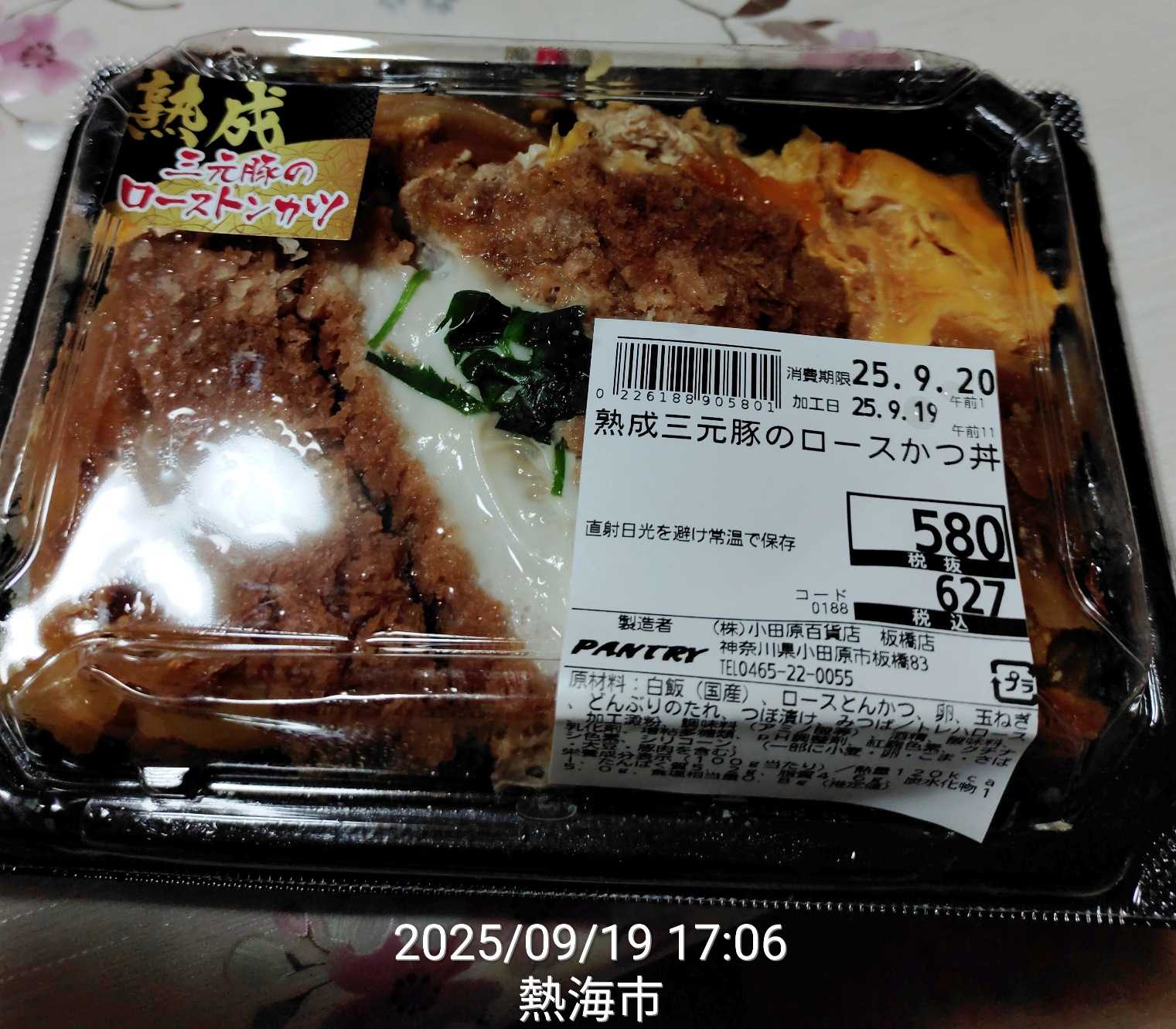 毎週金曜日は奥さんの生徒さんが食べ物を土産に持ってきてくれる日だ今日は小田原百貨店のカツ丼だ量が多いけど濃い味付けだったのでなんとか完食できた奥さんはラーメンが食べたいとかで袋麺を食べてた夕飯後、風呂から出てきて体重測ると60.0kgだったかろうじて60kgを上回った多分奥さんはお色にカツ丼を全部食べさせようとして自分はラーメンを食べたんだと思う優しいねぇ
