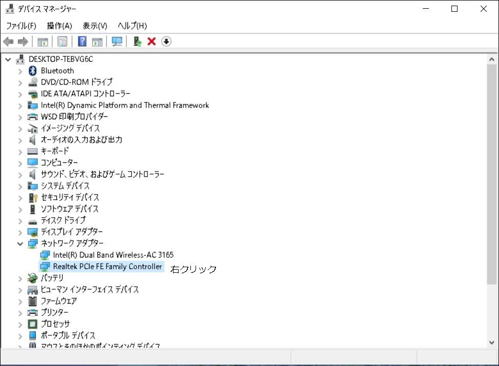 まずは デバイスマネージャーからネットワークアダプタの更新 だ。