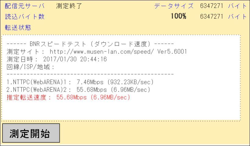 有線LANが死んでいるときにBNRスピードテストにしたけど有線LAN復活しないや。