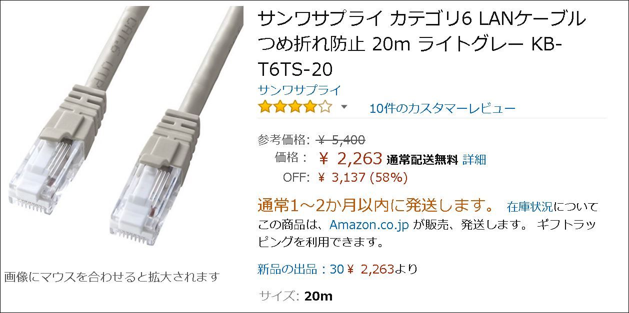 20メートルのケーブル買って見てそれでもダメだったら再びヘルプミーしますんで様子見てみますと伝えた。
