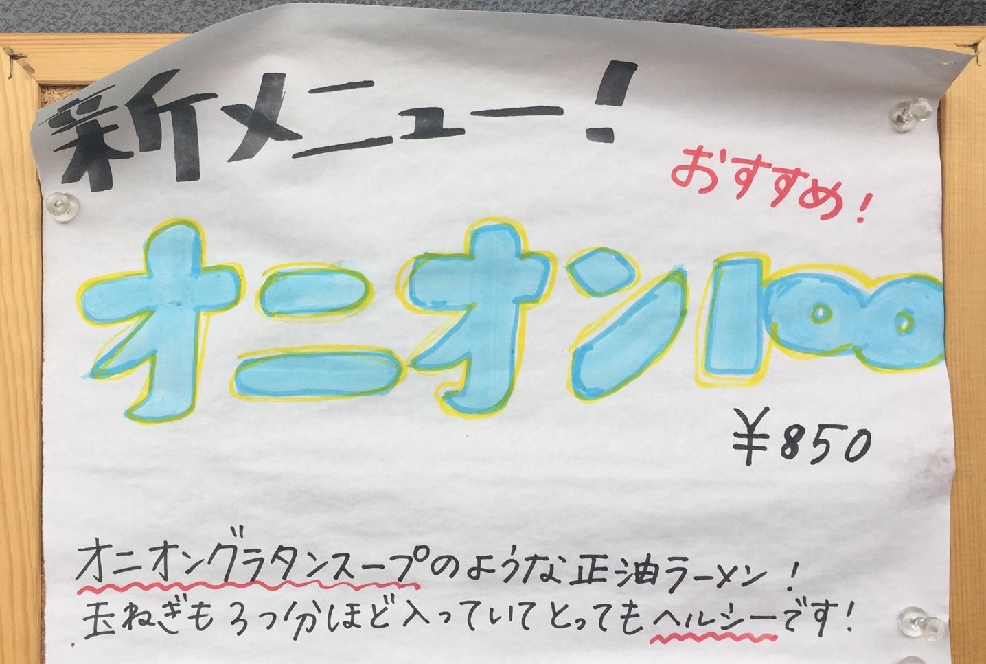 オニオン100という玉ねぎ3個分のオニオングラタンのような醤油ラーメンというものだ。