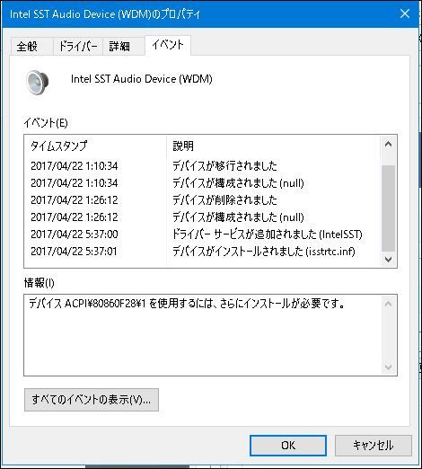 updateが無事終了・・・・ん? 音声出力デバイスがインストールされてない ?