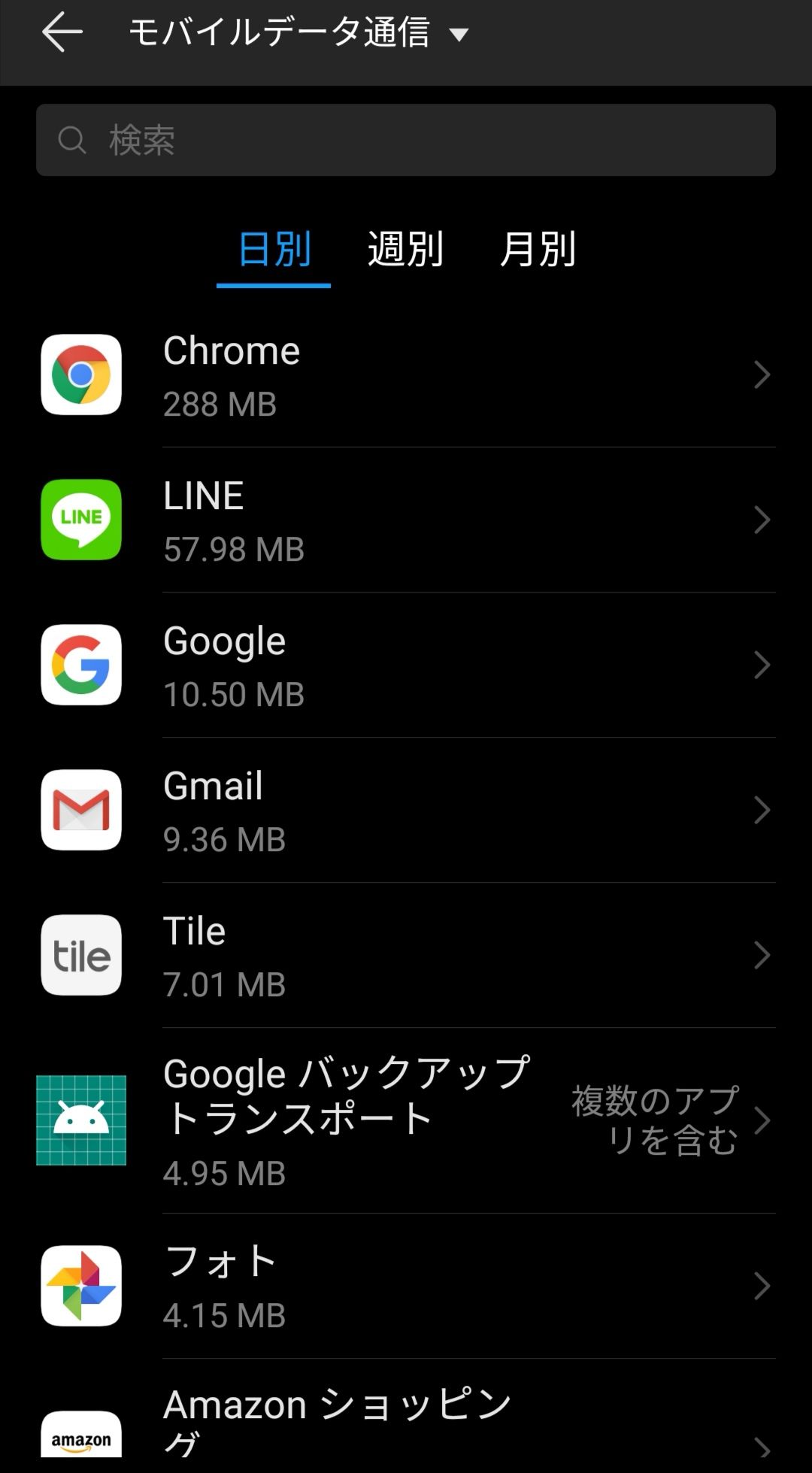 データ使用量は今日1日では5番目にデータ使うがLineやchromeよりかなり少ないから気にしなくていいのかな。