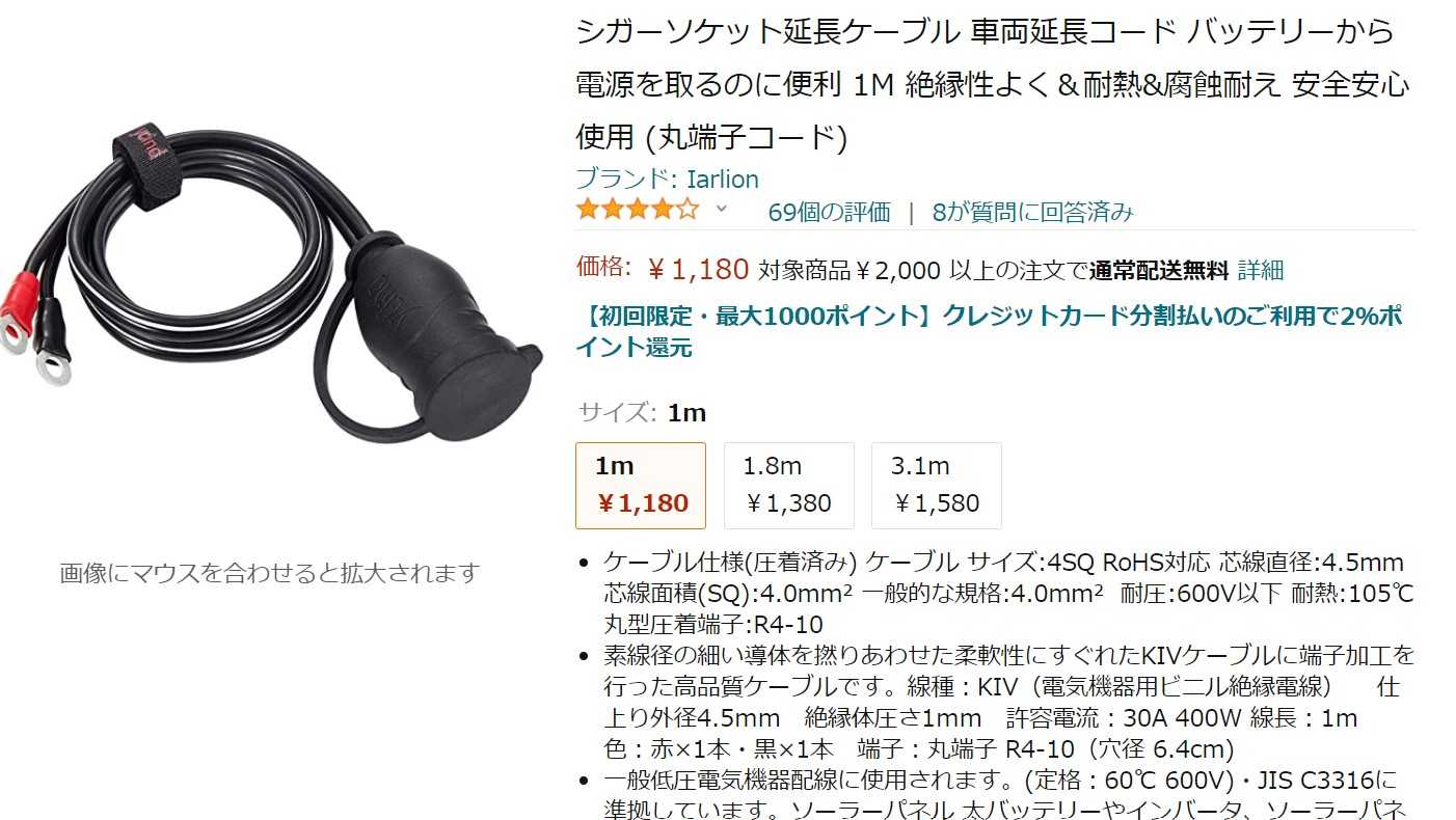 ひとつ目は シガーソケット延長ケーブル 車両延長コード バッテリーから電源を取るのに便利 1M 絶縁性よく&耐熱&腐蝕耐え 安全安心使用 (丸端子コード)