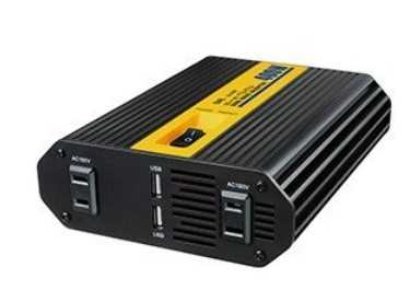 消費電力が400Wまでの家電製品を車内で使えるように、自動車の電源(DC12V)をAC100V/DC5V/DC12Vに変換する機器です。