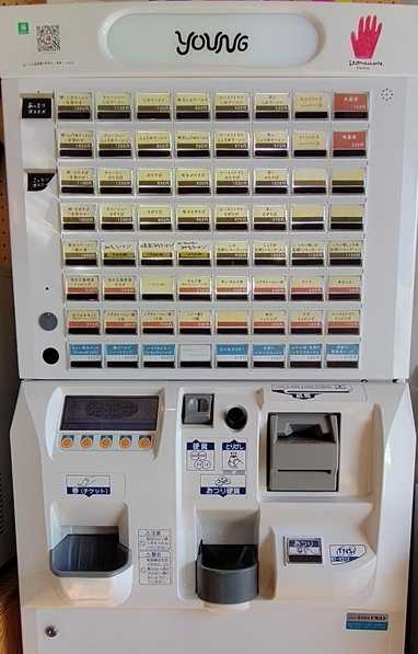 よく見たら食券の機械の上のほうに小さいシールが貼られてた