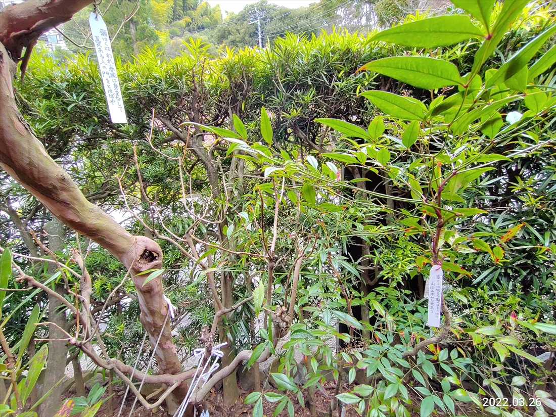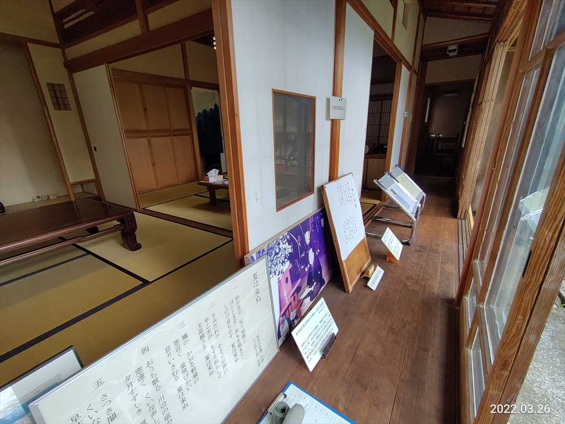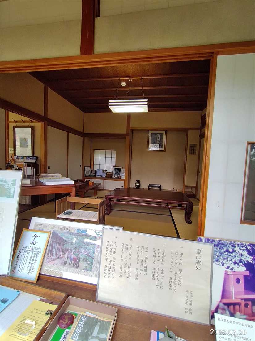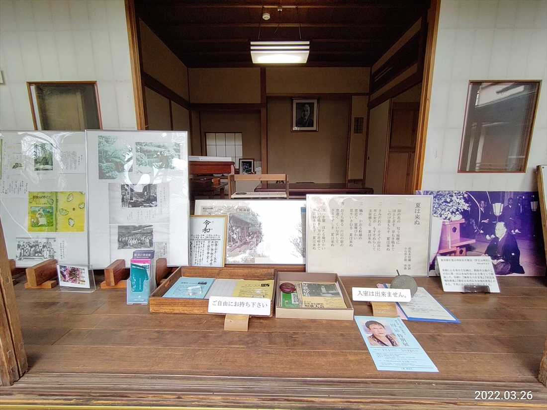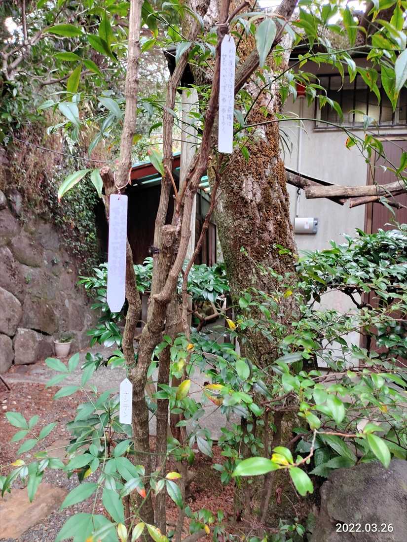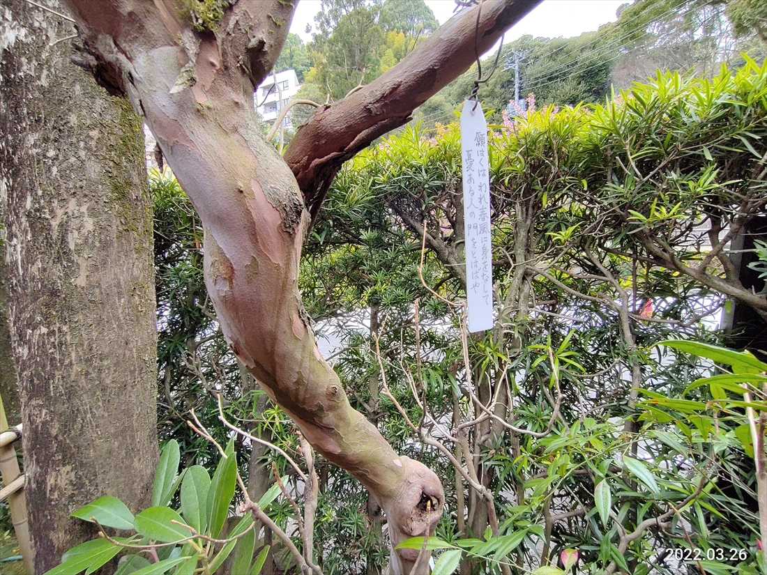 万葉集の研究者だけあって木に和歌が括り付けられている
