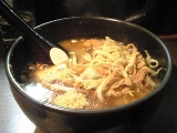 立川に行ったついでに「麺処ZERO」へ。きのうのことはなかったコトにしてココを「今年初ラーメン」ってコトにしたいなぁ^^;「石神本」の地図だと伊勢丹の中にあるように見えるけど伊勢丹と高島屋の間の道路沿いにある別のビルです。ここの店主は「俺の空」で修業したことで有名だけど、ここは店の雰囲気もラーメンも「俺の空」を上品にしたカンジ。でもそんなに大きく違うわけではないので、「俺の空」が好きな人は、ここのラーメンも好きでしょう。「俺の空」を“本宮ひろ志”だとしたら「麺処ZERO」は“宮下あきら”ってところだろうか?決して“江川達也”じゃないから師匠のファンでもOK!でもアレか、「金太郎」のファンだと「男塾」より江川達也の作品の方が好きかもしれないな。なんか例え話の方がわかりづらくなってるゾ(笑)とにかく“「俺の空」から独立した人の店”ってフレーズに惹かれた人なら期待を裏切られるコトはないと思う。もう少しオリジナリティがほしい気はするけど。