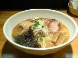 一二三そば 900円用事で吉祥寺に行ったので、ついでに「一二三」へ。例によって「石神本」を見ながら歩いていたんだけど、およそラーメン屋には見えない外観から見事にスルー。しばらく経ってから明らかにおかしいと気付きUターンして、ようやくお店を発見。お店の中もラーメン屋らしくない。洒落たバーと言われればそう信じてしまうだろう。店主もどこかアーティスト風のルックス。スープを丼に注ぐのに何度も繰り返している。スープの上澄みだけをすくってるようだけど、そういう細かい作業が似合う人だ。出てきたラーメンは見た目はアッサリ・スッキリ。食べて見ると・・・味もアッサリ・スッキリなのは間違いないんだけど・・・何でしょコレは?こないだ食べた「烈士洵名」は「そばみたいなラーメン」だけどこれはそばとラーメンの中間というか境界線上にある食べ物だ。なおかつ「美味い」。おそらくそば好きの人も「美味い」と言うだろう。具はネギ、チャーシュー、海苔、茎ワカメとシンプル。計算しつくした上で必要なものだけ・・・ってトコかな?店主のルックスからそんな印象を受ける店を出るとき、どんな味でも必ず「ごちそうさまでした」と言うんだけど今日は続けて「美味しかったです」と自然に出た。そんなお店。