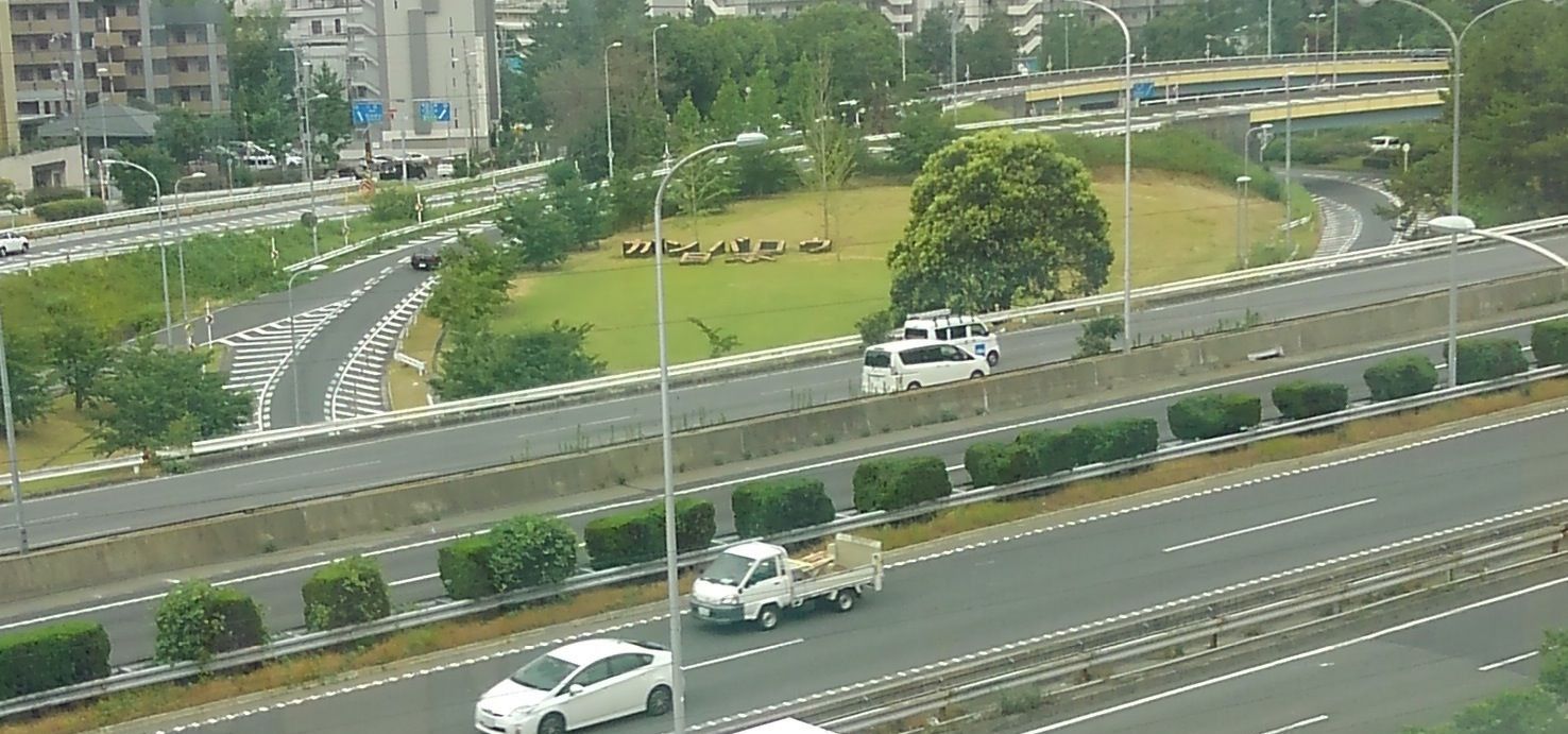 仕上げは、御堂筋線の駅からみえた「ガンバロウ日本」の植え込み。