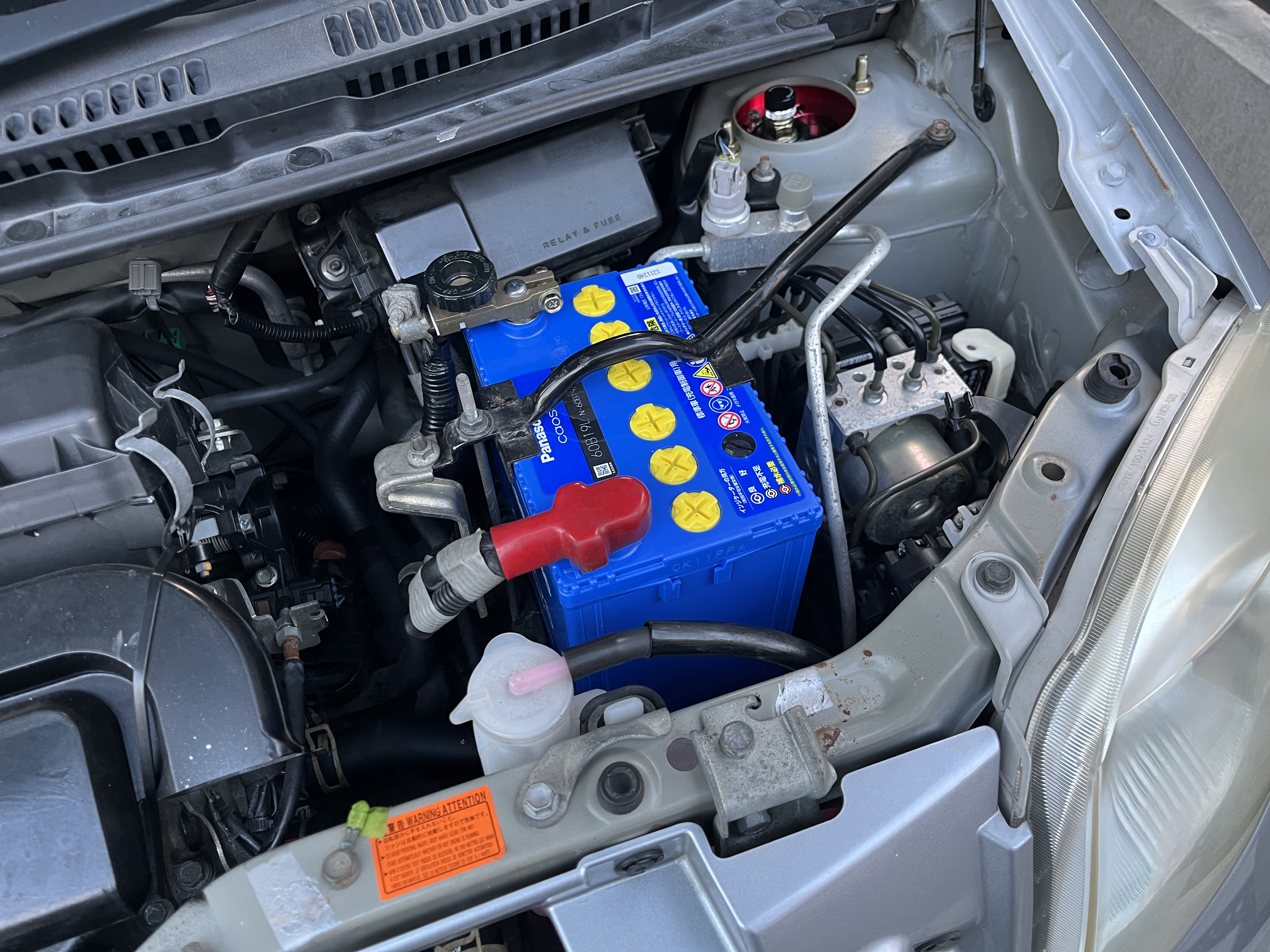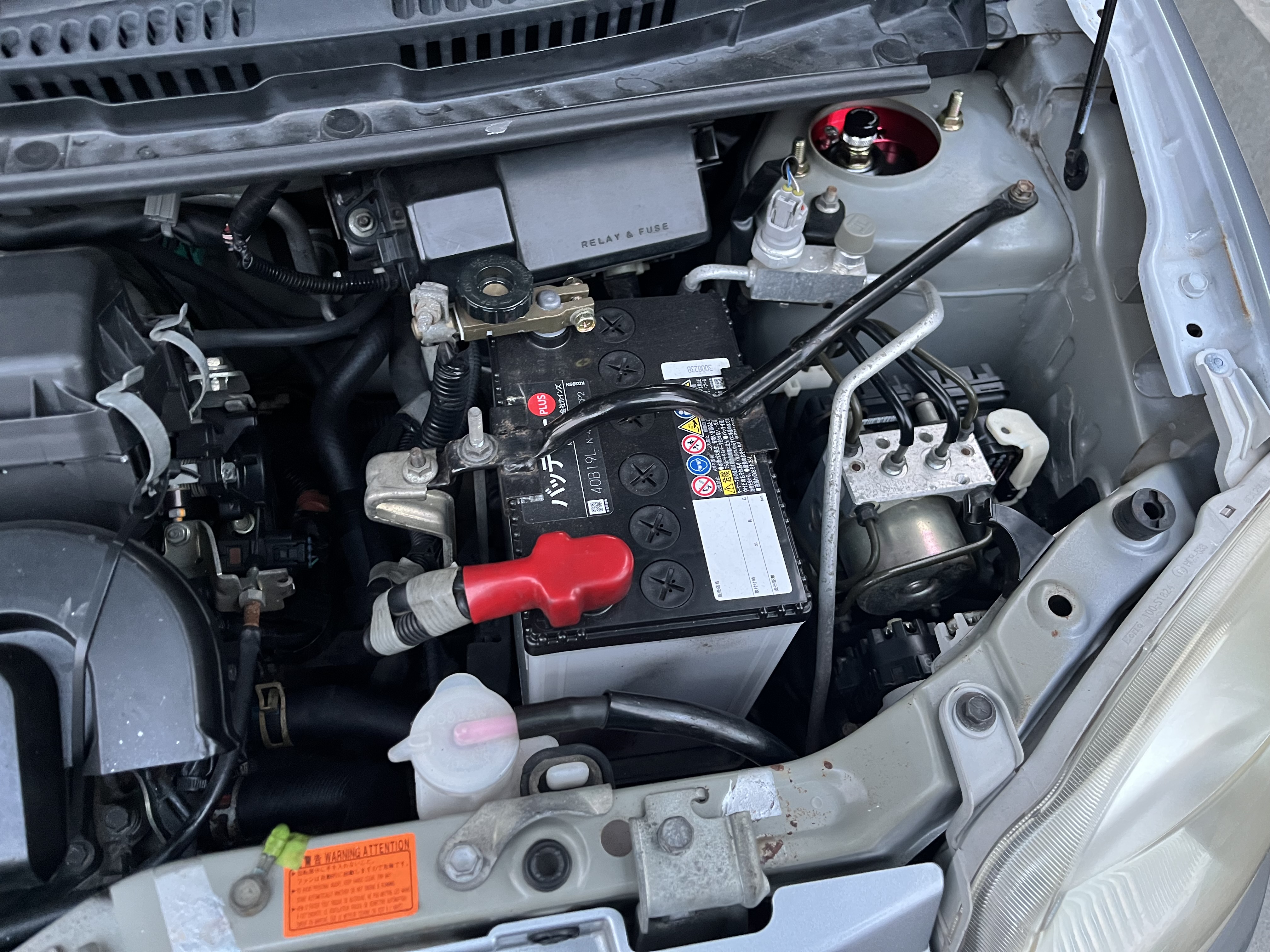 前オーナーによる謎カスタムの多いエッセですが、バッテリーや油脂類はそれなりのサイクルで交換されてる様で有り難いです。