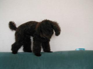 モコってちょっとネコっぽいとこあるんです。ソファーの背もたれの上を歩いてみたり・・・前足の動きもネコみたいと思うことあります。小1の甥っ子がモコとさんざん遊んだ後に言ったんです。「ねぇーねぇー、犬・猫 どっち?」