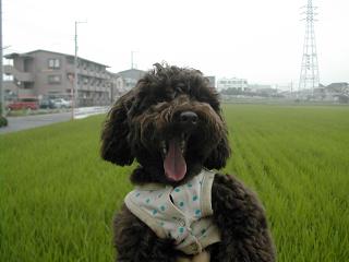 今日も夕方、モコちゃんお待ちかねのお散歩です。家を出ると霧雨が降っていましたが気にせずそのまま行くことにしました。家を出てすぐの電信柱に「あらまあ、すごいマーキング!!」これはかなり大型犬のもの(/--)/アラマア・・・・負けじとモコもマーキングを試みるものの足元にも及びません。。。だいたい高さが 1/4 程度そうそうモコは去勢手術を受けたんですが1つしか取れなかったんです・・・「もともと1つしかないか、マダ降りていない」って先生は言っていたけれど「ぜ~ったいあるでしょぉォオ!!!」臭いが気になりすぎですから・・・まあ、それはともあれ、どんどん車の通らなそうな道へ歩いていきました。途中で (≧∇ノ■ゝハイ、チーズ♪雨もパラパラしていたので30分くらい歩いて家に帰ってきました。あっ!!さっきマーキングした電信柱・・・また別のワンコが来たらしくモコのはあとかたも無く消されているではありませんか!! あんなに頑張ったのに・・・ U゚ェ゚U クゥ~ン!!モコはこの激しい縄張り争いに参戦できるでしょうか???モコちゃん p(*≧ω≦)/ ファイト~!!