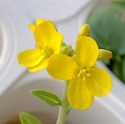 昨日、一輪が咲いた「小松菜のヘタ」は、三輪に↓↓↓