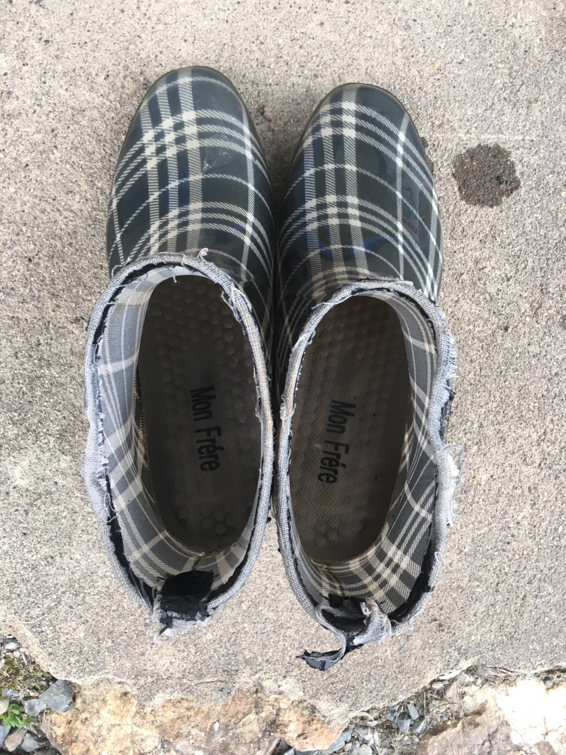 おばあちゃんのおさがりの長靴?ショートブーツ?をはいて!どろんこになりました(笑)