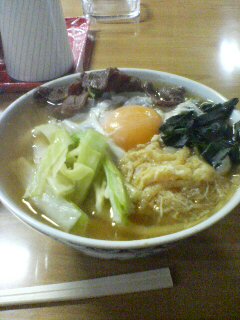 つゆは薄味ですが、甘辛く煮てある馬肉と玉子と絡めるとちょうどいい感じです。これで500円は安いですね(o^-^o)