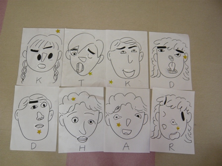 Happy New year9人そろって元気いっぱいレッスンに来てくれました。宿題を提出したりいすをそろえたりさすが小学生! 休み明けでも立派にできていました レッスン内容 1~10まで数えるあいさつの歌アクションHappy New Year! 天気・曜日・月・日にちの確認ABCソング (今日から新しい歌)Roll call Q&Aアルファベットカルタ絵本 The noisy farm Simon says ゲームHead shoulders の歌福笑い遊び Good bye song今日は、カルタや福笑いなどお正月の遊びの要素を若干取り入れた遊びを中心にレッスンをしました。ほとんどの子が大文字に関しては、きちんと理解していてカルタも白熱してできました福笑いは、目隠しせずそれぞれのパーツを裏返したものを選び顔を作成しました異様な盛り上がりで、皆顔がくしゃくしゃになって笑っていました(笑)。皆の笑顔でパワーをもらった私です・・・Ayちゃん・Nくん・HくんAちゃん・Tくん・RくんMちゃん・Hくん・Sちゃん