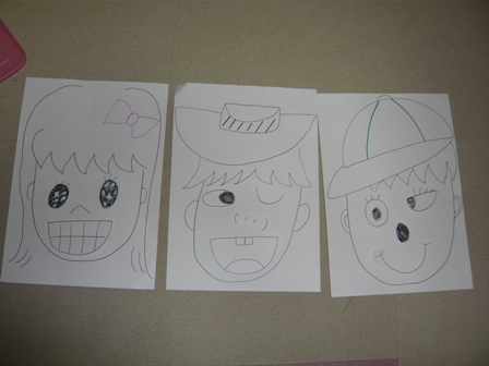 Happy New Year 今年も元気にやってきました~ガールズパワー(笑)。元気が一番! 今年も頑張りましょうね聞いてもらいたいことがたくさんあるようで次から次へと話題には困りませんでした(笑)。が、レッスンが始まると見事な集中力で感激です レッスン内容 1~10まで数えるあいさつの歌アクションHappy new year! 天気の確認ABCソングroll call (動物タッチしながら)Q&A1~30の復習VOCA 動物カード (新単語・owl/racoon/camel/kangeroo/duck/horse/mouse) カルタ絵本 Head shouldersの歌福笑い遊びgood bye song今日は復習メインに行いました。新しい単語にも興味深く覚えてくれました。そのあとのお手製感100パーセントの福笑いですがとっても楽しんでやってくれました。裏返しになったパーツを選び顔を作りました。二回目は目隠しをして行いましたが、異様に盛り上がっていました。Oh no!などの言葉が聞こえました(笑)。が、子ども達のリクエストは、きちんとできているほう??を載せてくれ・・・(笑)なのでこちらを載せました。Aちゃん・MEちゃん作MOちゃん・MIちゃん作