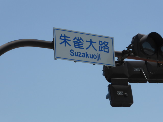 大宰府政庁跡から南に向かうこの道は朱雀大路というそうです。平城京や平安京といった条坊都市の宮城(大内裏)においては宮城・官衙の正面から南方に向かう道のことを朱雀大路と呼びますね。