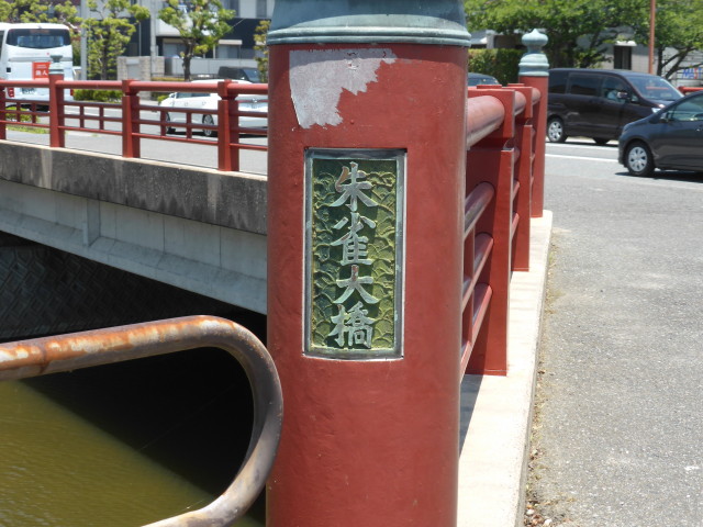 この橋の名前は朱雀大橋です。朱雀は南方を守護する神獣とされていますから、太宰府も都の平城京や平安京にならって都市を作っていたのでしょうね。