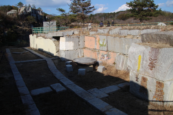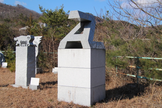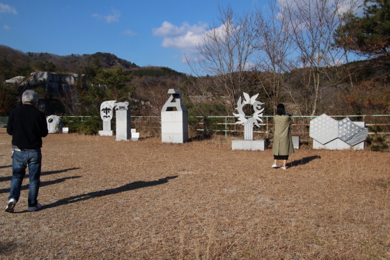 石切山脈の展望所には、石の彫刻が多く展示されています。