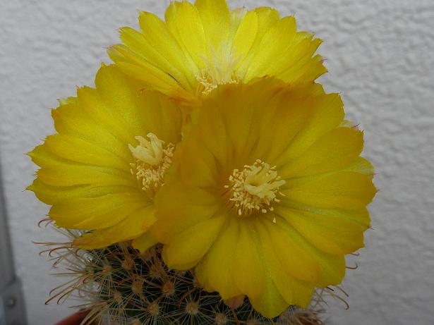 七年前に買ったサボテン 買ったときは確か綺麗な花が咲いてた 翌年からぜんぜん咲かなくなった 何故か団子のように実が?重なり 花は咲かず枯れもせず、何を思ったのか今年蕾らしきものが出て 何と花が咲いた。ちょっとしたサプライズ 花の色も忘れていた 黄色だったんだ!!七年目の気まぐれ””