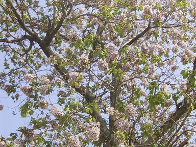 新聞で八尾の心合寺山古墳で桐の花が満開ですよーぉの 記事を見て、どうしても近くで見たくて行って来ました。 藤の花のようには匂わないけど、まさに満開でした。