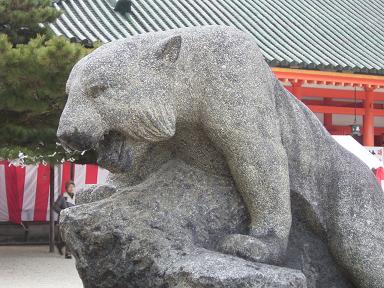 平安神宮にこんな勇ましい白虎が、参拝者を迎えてくれる ひよっとして威嚇してるのかな?