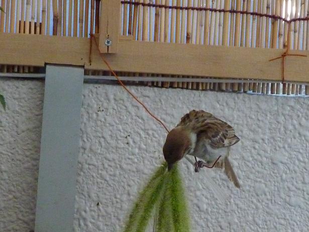 ベランダに毎日遊びに来るスズメ、彼らの好物はこの草の実猫じゃらし””エノコログサ”だとか それとなく観察?してると固体差があって 人間をあまり恐がらない奴 臆病な奴遊び好きな奴や けんか早い奴‥等々けっこう面白い