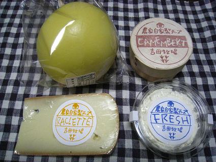 のんびり大自然の中、お昼寝がしたいです。できれば川のせせらぎが聴こえて、緑がいっぱいのキレイな山が希望です。温泉も可。連休希望のもんでぃです。日曜日に岡山県にある吉田牧場さんへ出かけてきましたココのチーズはテレビで紹介されたり、有名なレストランで出されてたりと、調べてみると美味しいと評判のようです。のんびりと高速を使わず、到着したのは1時半先客が1組。私たちの後にもう1組とお客さんは途切れることなく来てました。買ったのはコチラ前もって電話予約しておいたものですカマンベール・フレッシュチーズ・ラクレット・カチョカバロの4種類。早速、賞味期限の短いフレッシュチーズを頂きましたパンは吉田牧場さんに向かう途中に寄った道の駅で買った焼き屋さんのカンパーニュですチーズはあっさりさっぱり、わずかに酸味があります。かなりあっさりしてるので、その上にブルーベリージャムやマーマレードをのせても美味しかったぁちなみに焼き屋さんのパンは楽天でも注文できるみたいです。どのパンもずっしり重く大きい!焼き戻すとさすが石窯で焼かれたパンだけあって、皮がザクザクで香ばしい焼きたても食べてみたかった今度は焼き屋さんへ、紅葉の頃にのんびりドライブがてら寄ってみたいです