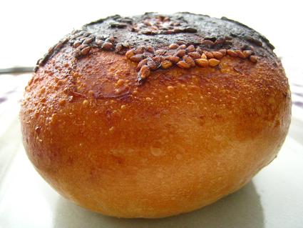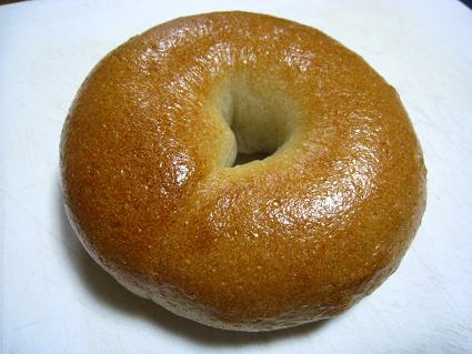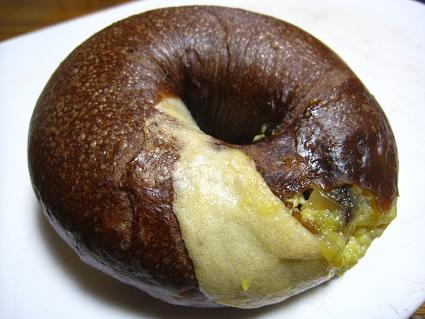 今朝、あんなに空気が澄んで見えたのは、昨夜の雨のおかげ?それとも通販したベーグルが今日届くから?そして明日がお休みだから?精神的な影響が強いと思われます、もんでぃです。黒練りゴマチーズベーグル以前、抹茶とのマーブルを作った残りの生地で甘くないベーグルにしてみました。中には溶けるチーズとクルミをin見事にチーズは跡形もなく溶け、おそらくあっただろう空洞だけが残ってましたお味はしっかりチーズ味黄金鶴+ゴールデンヨット+はるゆたかブレンドを使ったので、いつもよりかなりソフト。もうちょっと弾力のある生地がよかったかな