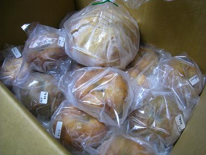 昨日はいつもパンを差し入れして下さる方に、勝手にプレゼントしようと夜な夜なパンを焼いてみました。もちろん使うのはブルーベリー酵母結構いっぱい育ってると思ってたけど、カンパとリュス2個分で全て使いきり計算外明日明後日は連休で、パン焼き放題なのに・・・。私のバカ・・・。そんなこんなで焼いたのがコチラドライフルーツとクルミのカンパボッコボコのハンバーガー見たい微妙なフィリングの偏りと量ですが、良いのでしょうか不安になりプレゼント用もカット乾燥しないように1人用に分割して、まるまるお渡ししようと意気込んでたのに、全く意味がありません案の定、フィリングの偏りは明らか。しかも味見用の方がフィリング多いし!!『何でぇ~!!』ガックリうなだれた私に『噛めば噛むほど甘みがあって美味しいよ』とどこかで聞いたようなお料理番組のコメント的な必死のフォローしてくれる母を横に、袋詰めするのでした。プレゼント用食べてやってくください