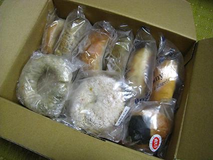 今朝、レンジの温め機能を使おうとしたらエラー連発。いよいよ限界がやってきた模様です。明日こそはキメに行ってこようと思います。優柔不断を存分に発揮する、もんでぃです。先日、携帯をふと見るとブログで仲良くなったyellow*turquoiseさんから『冷凍庫あいてますか?』のメール空いていますタイムリーに空いていますあんまり空いてるって言ったら送ってくれって催促してるようで申し訳ないかと思いましたが感情を抑えきれず、ありのままお伝えさせていただきましたそして昨日届いたのがコチラ729?さんの限定もの気になっていたCoharu bagelさんとカロンさんそして明日の通販をどうしようか迷ってたBrowny Bagelsさんステキすぎるランナップです早速久しく食べてなかったBrownyさんのベーグルがどーしても食べたくなって頂いちゃいましたブラックペッパー&チーズやっぱりココのベーグルは大きいしかもウマいっ生地のしっとり、もっちり感にクドくないチーズ、何と言ってもブラックペッパーがいい塩梅ですエダムベーグルコチラはお初です!タイプ50なので水分量少なめ、みっしり詰まった生地で若干パサついた印象があります。いや~、今回もパスして新しいお店を開拓しようと思ってましたが、もっと食べたくなりましたきっと明日、通販開始を待ってポチッとしちゃいそうです残りのベーグルも大事に頂きます本当にありがとうございました夏バテにPC、早く回復してくださいね