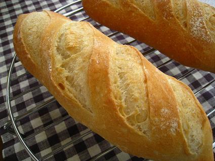 眠くなると机にクッションを置き、その上にアゴをのせ休む癖がある私。気付くとアゴに内出血の跡が点々と残っていることがあります。ちょっとしたオシャレ顎髭なのです。ダンディ、もんでぃです。調べてみるとフランスパンには長さや太さなど細かい分類があるようで、ハチミツまで入れたこのパンをバゲットと呼んでいい物かはさておき、そう呼ばせて頂きますバゲットクープをどうにか開かせるために、霧を吹いた生地を250度に予熱したオーブンへ入れスタートを押したい衝動を何とか抑えること3分。その後、250度で10分・220度で10分。ちょっと色白ですが、真中2つのクープはそれなりに開いてくれたので、まぁ良しとしましょうちなみに全貌が写ってないのは、皆さんの予想通り不格好だからそして半分に割った画像がないのも予想通り気泡なんてなかったからそれでもバゲットから聞こえる、かすかなパチパチにニンマリの1日なのでした