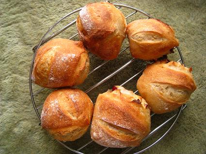 年末、日本の景気回復に一役買おうと購買意欲に火がついた、もんでぃです。ゆず酵母に撃沈し続いて仕込んだみかん酵母。途中までは非常に元気がよかったのに、なぜだかだんだん弱弱しくなってドロドロし始めたので、一気に使い切っやりましたまずは久々にカンパーニュくるみ&甘納豆のカンパーニュ(みかん酵母)籠から出した時は確かに丸かったのに、オーブンから出たら楕円し・・・しかも重いまとまりのないてっぺんが作った人の性格を表してるようで、反省ですおまけ酵母使い切りに焼いたスコーン2種類コーヒーナッツとブルーベリーホワイトチョコこちらもサックリ感ゼロの重めスコーンとなっております