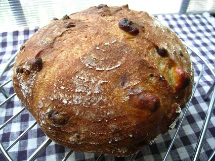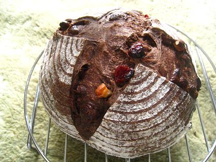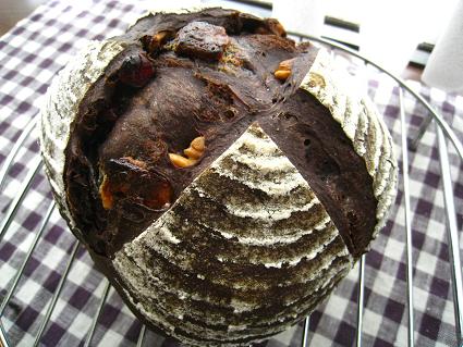 2日続けて、同じ場所に羽を広げて日光浴をしている鳥を見かけました。朝からのんびりとっても気持ち良さそうで、眠たい朝の通勤時間が少し楽しみになってます。今日は優しい気持ちでスタートです。ラジオのパーソナリティ風、もんでぃです。ブラックココアを使ってカンパーニュを焼いてみました題して冬っぽいカンパーニュ何となく色が冬カナ?と・・・発酵籠にくっつくのが嫌で、水分少なめ打ち粉多めです中には大好きなクランベリーとホワイトチョコとクルミもともとチョコが苦手な私にとって見た目はありだけど、食べると香りが苦手なブラックココアなのでした
