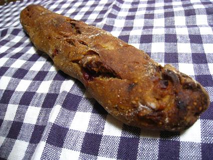 パン巡りがいい気分転換になったのか、体がだるくて仕方なかった日々がウソのようです。連休まであと半日。張り切って働きます、もんでぃです。大阪パン巡りの旅で、絶対に再訪したかったのがブーランジェリーP・Bさん到着したのは1時半ころ。すでにバゲットは売り切れでした。Volcano前回は小を購入してかなり美味しかった記憶をもとに、今度は大を購入。中には大きなイチジクやレーズンにクルミがわんさか小さいものよりこちらの方がドライフルーツの割合が多いそうですよお得でウマイ!!ディアブロこちらはお初です。ブラックココア生地にチョコ・クランベリー・ナッツなどが入ってました。自然解凍後、薄くスライスして食べたから中のチョコがザクザクしてて美味しい!!甘さ控えめで、見た目よりとっつきやすいパンでした。もう一個あるから、今度は焼き戻してみたいと思いますマカダミアナッツのパン名前はわかりませんが、これ以上入らないってほどに、どこを切ってもマカダミアナッツ香ばしくて美味しかったですしかしまぁ、どれを食べてもはずれなし!!全体的にどれも小ぶりですが、満腹感は大きく腹もちも抜群てことは、カロリーが恐ろしい・・・食パンも食べてみたいけどさすがにつぶさず持って帰る自信もなく断念しました次回は食パン持ち帰り用に袋を用意して行こうかと思います