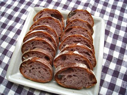 盆休みに、ドンキホーテーで父が買った赤ワイン。半分飲みかけで置いてあるのをちょっと拝借してパンを焼きました赤ワインをドバドバ入れて余裕で1次発酵。一応確認しようと本を開けると、そこに載ってたのはアルコールを飛ばすため半量まで煮詰めるか、フランベする。あら間違ってる一気にやる気がなくなってしまった私。取り敢えず、ラスクにでもしようと適当に焼いたのがコチラ赤ワインパン思った以上に赤い仕上がりそして、思った以上にウマいアルコール臭いと思いきや、全く気にならないし独特の甘みがある諦めずにちゃんと作ればよかったです今度赤ワインを見つけたら拝借して丁寧に作りたいと思います