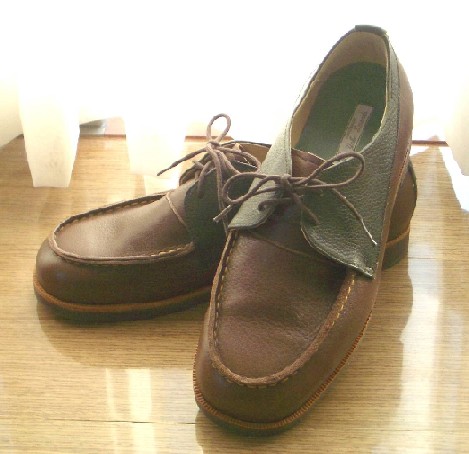 引っ越しも落ち着いて、新しい街にもちょっと慣れたので、何か新しい事を始めたいなぁ~と思い、探してお教室に通い始めました。週一回のお教室は、初めての素材、初めての道具に、戸惑いながらも楽しい~~。そして、通い始めて3ヶ月半、出来上がったのが、こちら! ↓ ↓ ↓そう、通い始めたのは「手作り靴教室」。皮の裁断、釘打ち、縫製・・・靴底も一枚のスポンジやゴムから、形を削り出し、圧着。最初は、靴なんて上手く作れるの?と不安でしたが、自分なりに気に入った一足が出来ました。自分の足型に合わせて作っているので、左右の形も微妙に変えてあるのです。まだ、もったいなくて履けない!でも、早く履いてみたい!どこか、記念お出掛け計画しなくっちゃ♪さぁ、皆様の予想と同じ結果でしたかぁ?ちなみに、初めてでも、先生が親切に御指導下さるので、どなたでも、お気に入りの一足が作れます♪