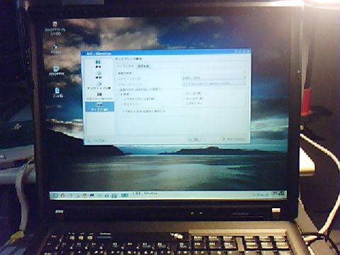 R60e(0657-22I)の画面(15インチXGA)をSXGA+にする作業をした。要は液晶を含む上半身をXGAのものからSXGA+にするだけなのだが…。SXGA+はR61(8943-A12)の15インチ液晶で、1400×1050の大きな作業空間を確保できる。R60系からR61系への主な変更点は、ワイド液晶への対応だったので、このR61は、ワイドでない普通の液晶としては最後のモデルのはずである。上半身の交換作業は、まずパームレストとキーボードの取り外しから始まる。次はキーボードべセルの取り外しで、ここまでやると、液晶ケーブルやCPUファン、WLANカードなどを確かめることができる。上半身の分離は、まず、WLANカードにつながったアンテナ線を取り外すことから始める。途中、テープ止めされているところもあるが、後で液晶を分離するときに困らないように外しておく。つぎは、液晶ケーブルだが、ケーブルがテープで本体にはり付いているところもあることから、丁寧に作業していく。液晶を含む上半身は、左右のヒンジそれぞれに3つのネジで固定されている。(底面・背面・上面)このネジを全て外せば、あとは分離・交換するだけだ。換装が終わったので、早速動作確認。BIOSでは判断できないので、Knoppixの起動で確認することにした。で、画面設定を見てみるとやはり「1400×1050」と表示されている。これで、いくつものwindowを開いていても一望できる。