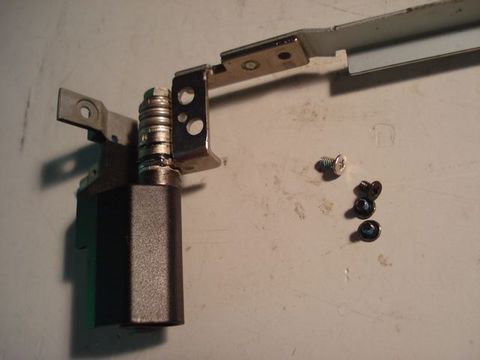 液晶割れのSL500から、健在な左ヒンジをゲットできたので、ヒンジが破損していたSL500の復旧に取り組むことにした。 ヒンジを交換するためには、SL500をばらばら状態に分解しなければならない。でも幸い、昨日、液晶割れのSL500を分解したてなので、今回は比較的スムーズに分解することができた。 破損してしまった左ヒンジを見てみると、本体との接合部が直線的でなく、ふたの開閉によってネジレが生じる。それが破損の原因となってしまっているように思える。また、ヒンジの固定のガイドの役目なのか、中央部にもうけた穴がヒンジの強度を下げてしまう結果になったと思われる。※交換用の左ヒンジ(上段)と破損したヒンジ(下段)※交換が完了した左ヒンジ。本体と固定される部分(下の突起部分)が、ヒンジと直線的でないため、ふたの開閉によりネジレが発生しやすい。またその右に見られる固定ガイド用と思われる穴が、このヒンジの強度を下げてしまっている。 ヒンジ交換後、元通りに組み上げて、Knoppixにて動作確認をしてみる。ヒンジの状態も上々。これでSL500を1台復活させることができた。■復活したSL500のスペックmodel:SL500 (2746-7SJ)cpu:Core2Duo P8600 (2.4GHz)memory:1GBhdd:なしcdd:DVDMultilcd:15.4inchWXGA(CCFL)