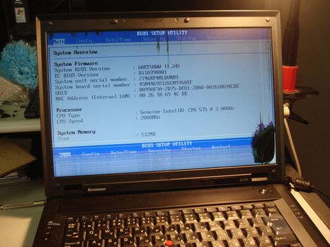 今更ながら、T60のシスボ(2007-BJ1)を手に入れてしまった。T60の余剰パーツがあったため、ついつい落札してしまったのだ。※外部ビデオチップがあるT60(2007-BJ1)Assisnetからゲット。 写真を見るとこのT60シスボ、外部ビデオチップが搭載されているみたいだ。期待感が高まる。 CPUファンは同僚機PKJより拝借。液晶ユニットはバックライトを交換したものの使い道がなくなってしまっていた14.1inchSXGA+液晶を使用。 メモリやDVDドライブはジャンク箱より調達、キーボードはZ61tのものを使用して、早速動作確認をする。※いろいろな余剰パーツを使って組み上げたT60。動作に問題ないはずだったが…。 ところが、windows 起動中に突然のシャットダウン。これは…? シスボの障害?それとも排熱が追いつかないのか?CPUファンはとても熱くなっているし…。まさか、液晶側の障害ってことも…。(確か、このT60の上半身、冷陰極管を交換したとき、ケーブルが断線してしまい、ちょっと短くなってしまった。それで、起動に影響があるとか…。) 障害を解決するために、まずは、T60の上半身を取り外して、外部モニタで動作を確認してみる。すると…。 なんと問題なく起動した。 つまりこの障害の原因は、上半身・液晶にあることになる。そう言えば、バックライトのケーブルが短くなってしまって、インバータとの接続が曖昧になり、うまく起動できない症例があった気がする。 これは、もう一度液晶ユニットから冷陰極管を取り出して、バックライトのケーブルを他のものに交換するしかない。 ということで、早速、他の14inchの液晶から取り外してあったケーブルに冷陰極管を取り付けて、再度、ユニットに収める。 最少構成で動作確認してみると、問題なく表示される。勝手にシャットダウンされることもないみたいだ。※最少構成で動作を確認するT60。今度は突然シャットダウンする症状は出ない。※無事、Win7も起動するようになったT60。液晶はSXGA+表示。Lenovo ThinkPadT60 CoreDuo-1.83GHz/1G/60GB/COMBO/11g/14.1/XP 【中古】IBM ThinkPad T60 Core2Duo-1.66GHz/1GB/60GB/COMBO/11abg/Win7 【中古】中古パソコン 3.5万以上で送料無料・安心のサポート 中古デスクトップ 中古ノートパソコン Windows7なら中古パソコンくじらや中古パソコン★大人気ThinkPadが訳ありの為お買い得★ IBM Lenovo ThinkPad T60 無線LAN 1GBメモリ DVD鑑賞OK Windows7 中古ノートパソコン 【KingosftOffice付(2013)】中古パソコン 3.5万以上で送料無料・安心のサポート 中古デスクトップ 中古ノートパソコン Windows7なら中古パソコンくじらや中古パソコン★大人気ThinkPadが訳ありの為お買い得★ IBM Lenovo ThinkPad T60 無線LAN 1GBメモリ DVD鑑賞OK Windows7 中古ノートパソコン 【KingosftOffice付(2013)】